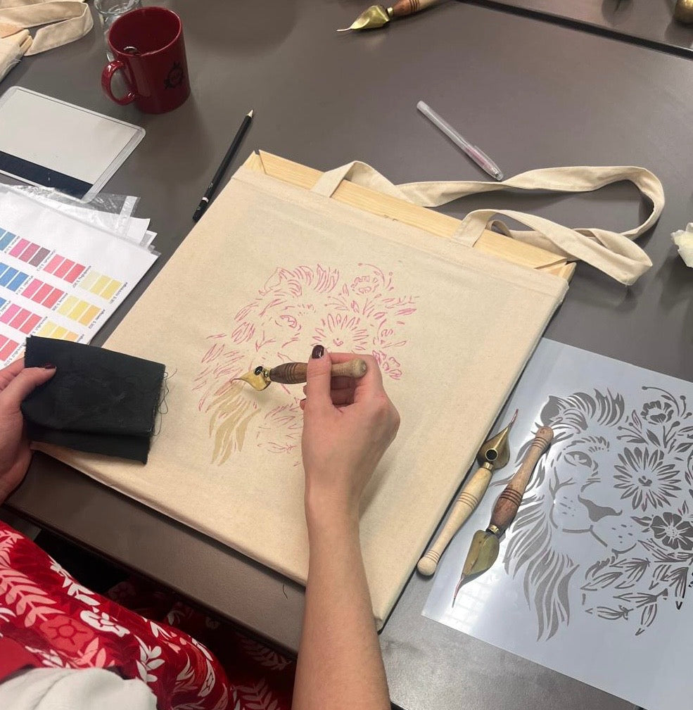 Tällä kurssilla voit päästää mielikuvituksesi valloilleen ja kuvioida itsellesi tai lahjaksi persoonallisen kassin. Kangasta työstetään kuumavahatekniikalla, vahakannua ja kuumaksi lämmitettävää vahaa käyttäen.