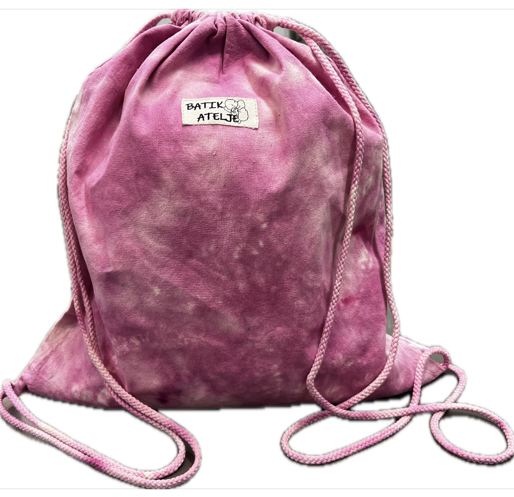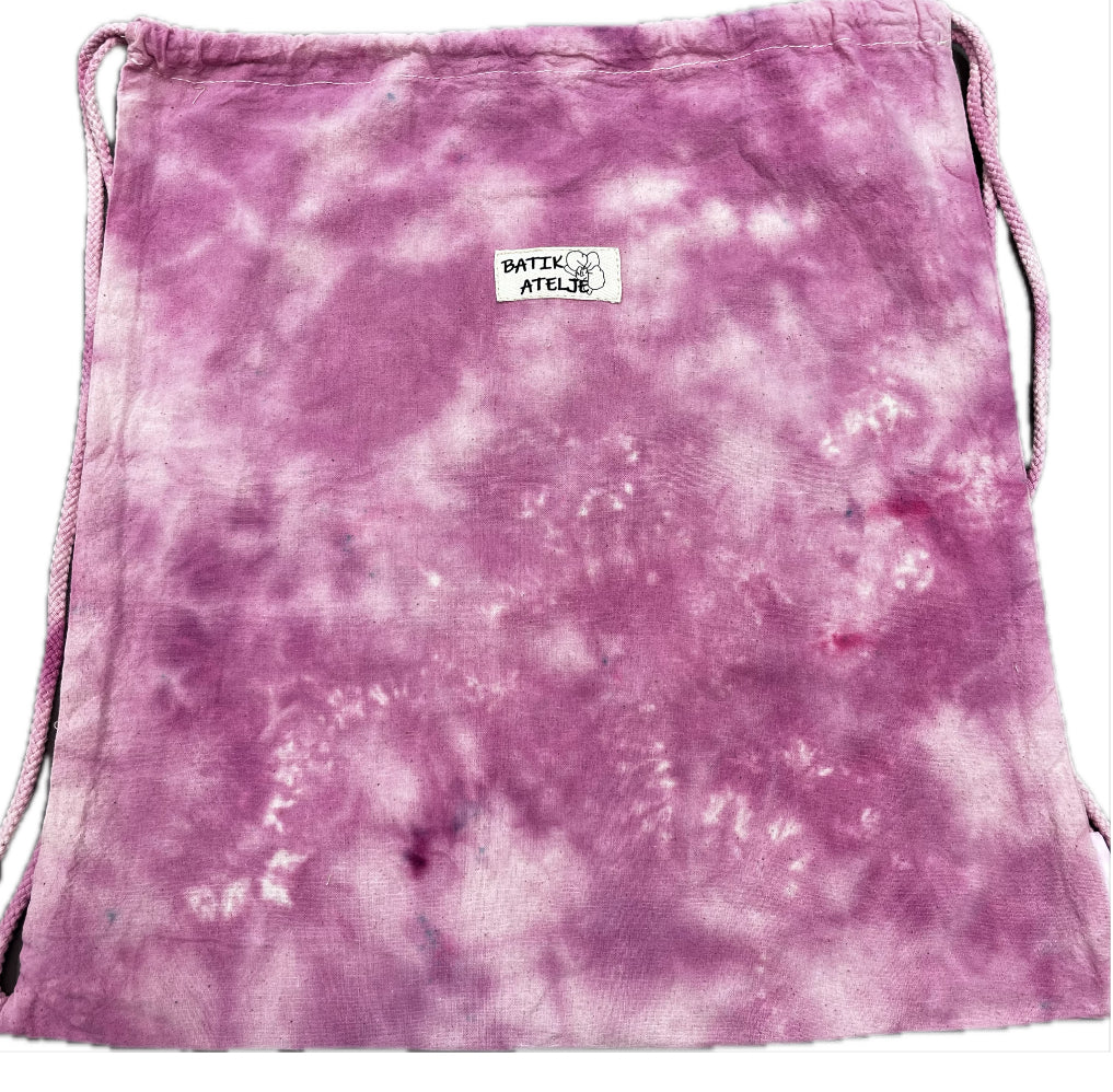 Monipuolinen puuvillainen kiristysnyörillinen reppu.