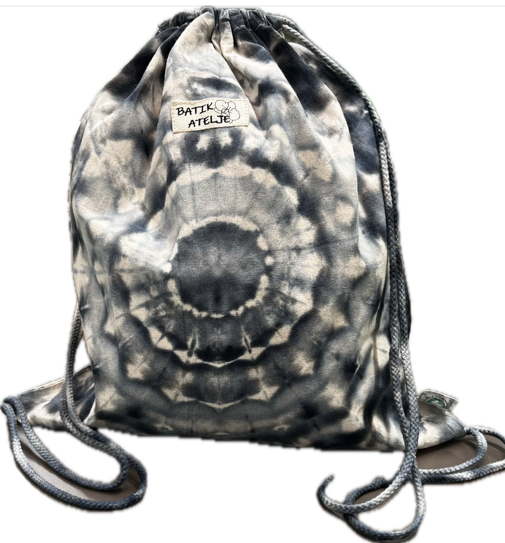 Monipuolinen puuvillainen kiristysnyörillinen reppu.