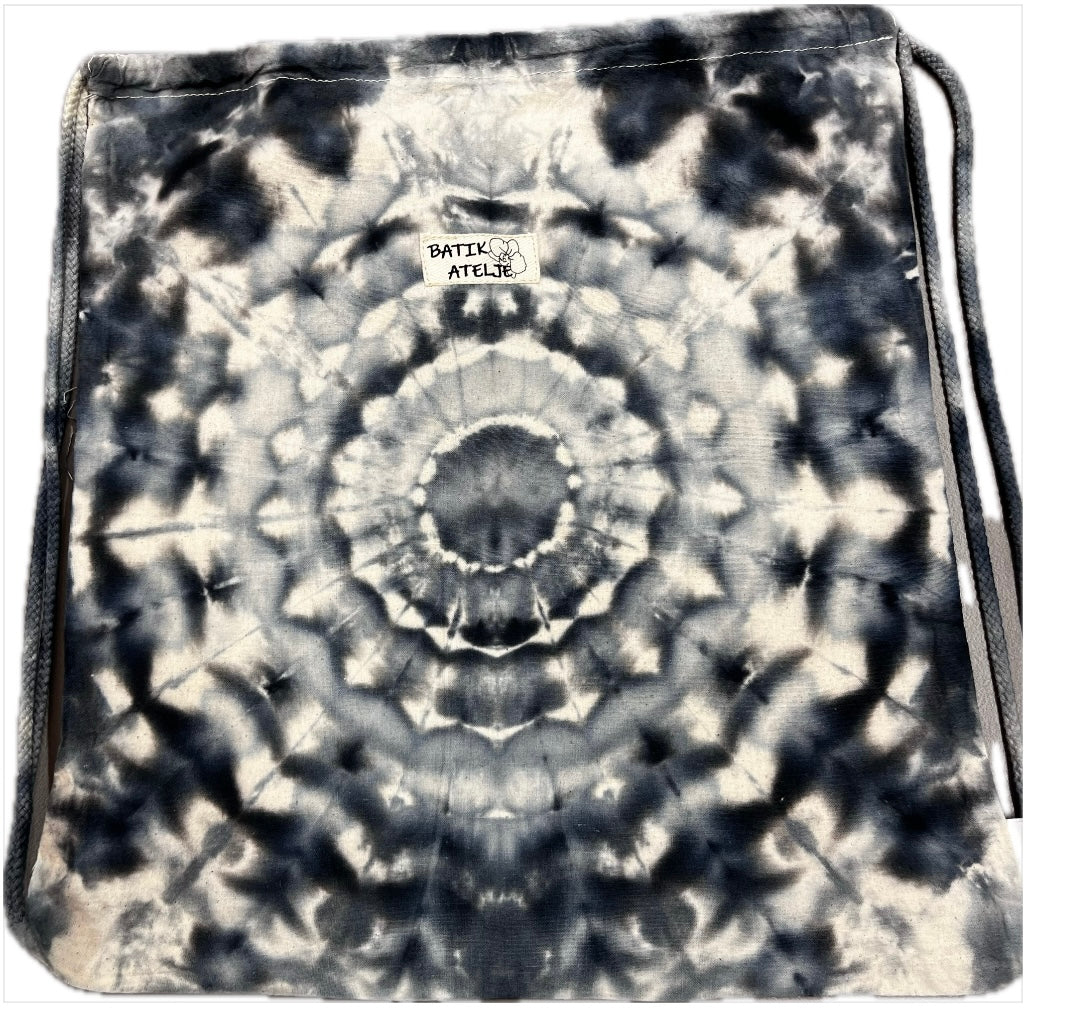 Kaunis ja kestävä mustan harmaa batiikkikangapussi