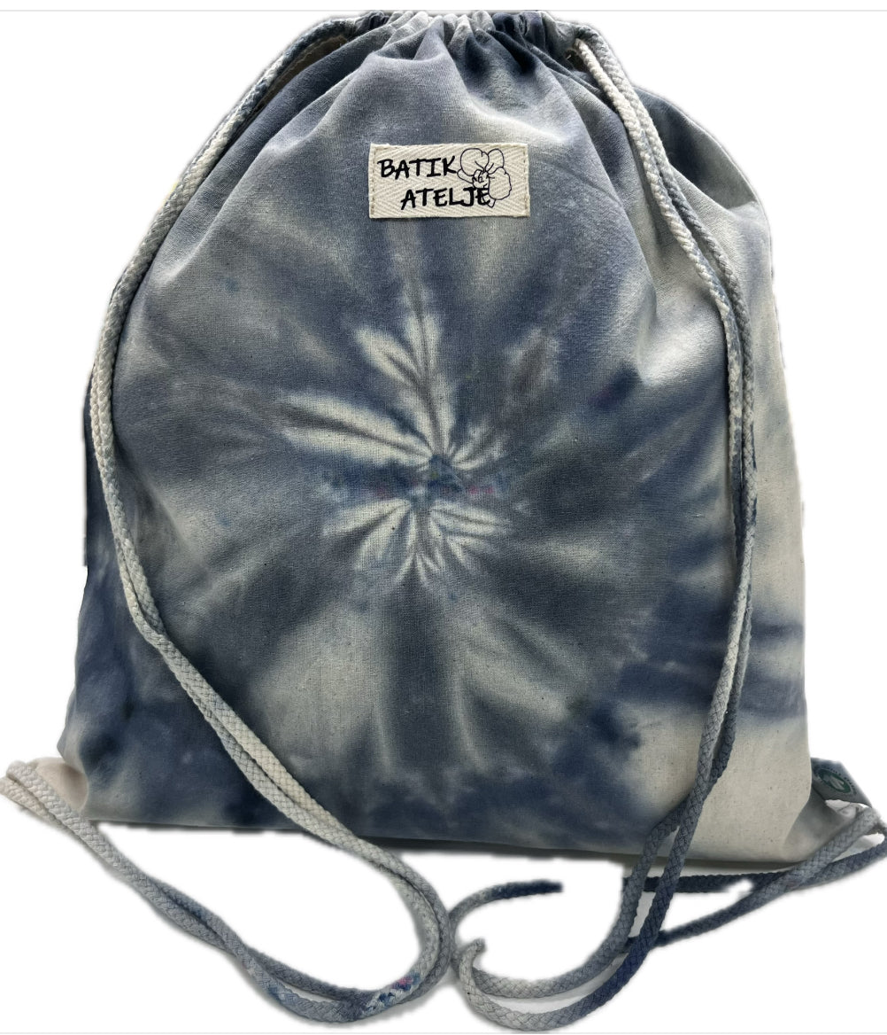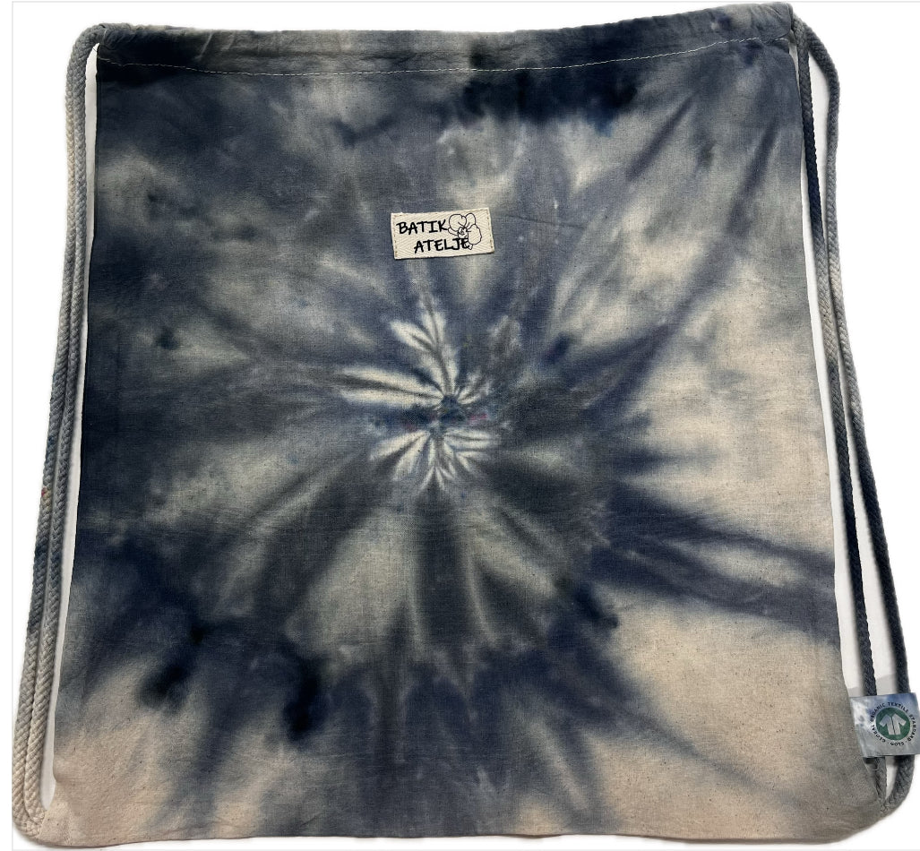 Kaunis ja kestävä siniharmaa batiikkikangapussi